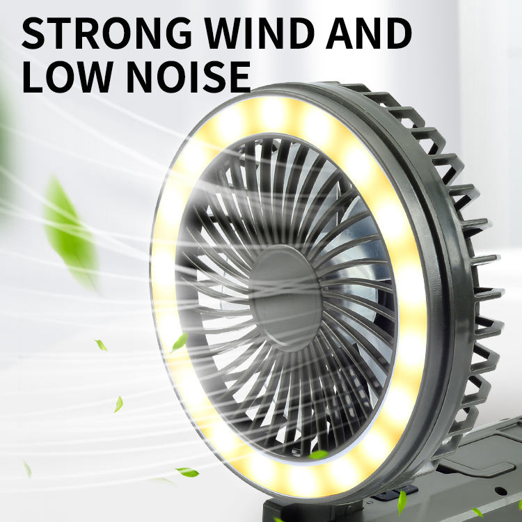 4000mAh 다기능 야외 미니 휴대용 램프 팬. 모든 모험에서 시원함과 조명을 유지하세요. 이 휴대용 LED 캠핑 팬 램프는 강력한 팬과 밝은 조명을 결합합니다. 대형 4000mAh 배터리는 오래 지속되는 USB 충전식 전원을 보장합니다. 컴팩트한 휴대용 디자인은 야외 사용에 적합합니다.